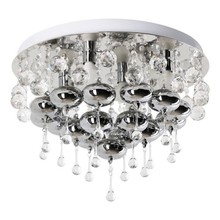 Nowoczesna oprawa utrzymana w bogatej stylistyce. Połączenie metalu i szkła nadaje lampie elegancki wygląd, a jej znakiem szczególnym jest duża ilość pięknych, szklanych ozdób. Plafon został wykonany z najwyższej jakości materiałów, dzięki czemu będzie można się nim cieszyć przez długie lata. Szczególnie polecany do nowoczesnych, stylowych wnętrz. Do zestawu dołączono pilot, dzięki któremu można włączać i wyłączać plafon oraz zmieniać jego barwę światła. Wbudowany moduł LED pozwala na wybór jednego z trzech trybów świecenia lampy.